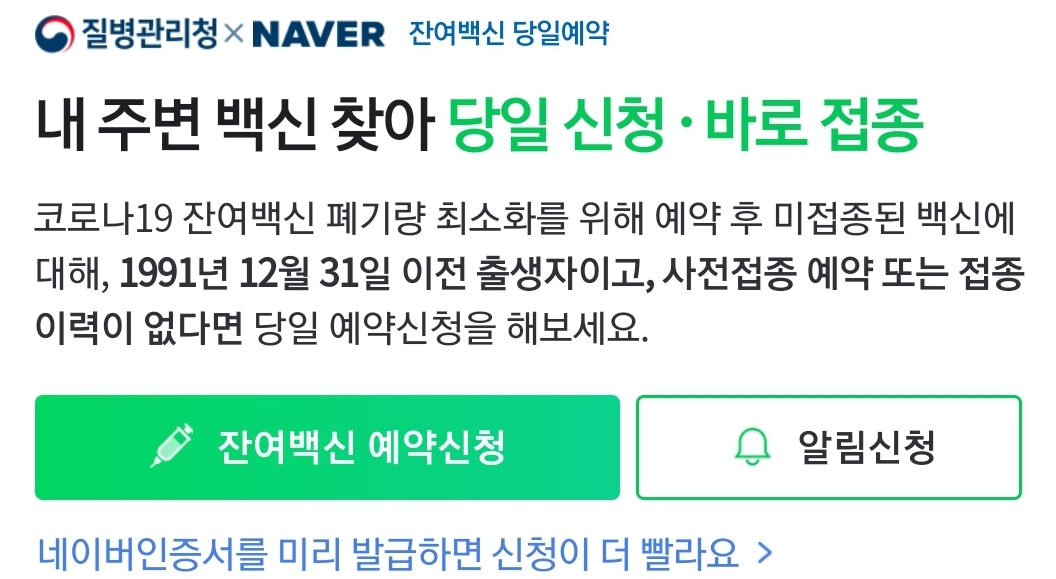 잔여백신 - 카카오톡 네이버 잔여백신 예약방법 - 인증서 발급 및 알림 설정 / 네이버·카카오 앱에서 '잔여백신' 당일예약…27일 오후 1시부터.. 16:49 애기한테 맥도날드에서 극딜먹음 (2) 유머게시판. 수치, 쿠데타 이후 첫 등장…유혈사태 전혀 몰라. 네이버 검색창에 '잔여백신'·카카오톡 '잔여백신' 탭에서 조회 가능 원하는 위탁의료기관 5개 지정해 잔여백신 발생 시 알림도. 전화로 신청한게 앱에 반영이 되어 있으려나. 뉴욕증시 소폭 상승…네이버·카카오로 '잔여백신' 당일 신청 가능 모닝브리핑.